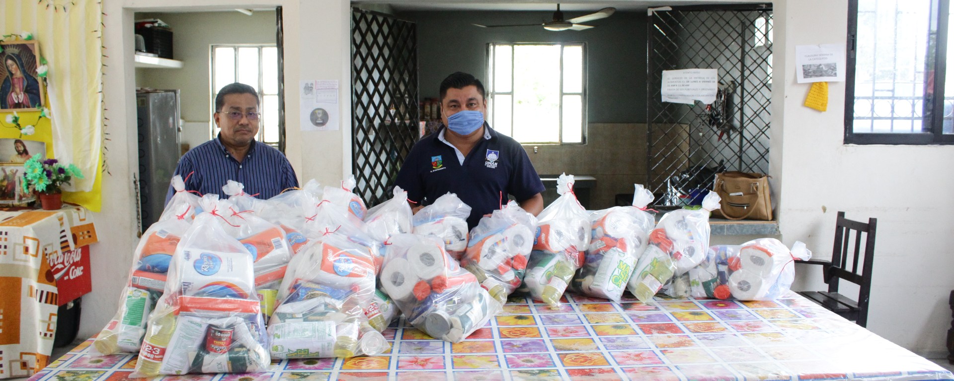 Como apoyo ante la actual contingencia sanitaria que estamos enfrentando a causa del Coronavirus COVID-19, el alcalde de Umán, Freddy Ruz Guzmán hizo la entrega de despensas al Pbro. Francisco Mukul Domínguez, párroco de la iglesia de San Francisco de Asís de la ciudad, que serán destinadas a las personas más vulnerables que acuden al comedor de la parroquia.