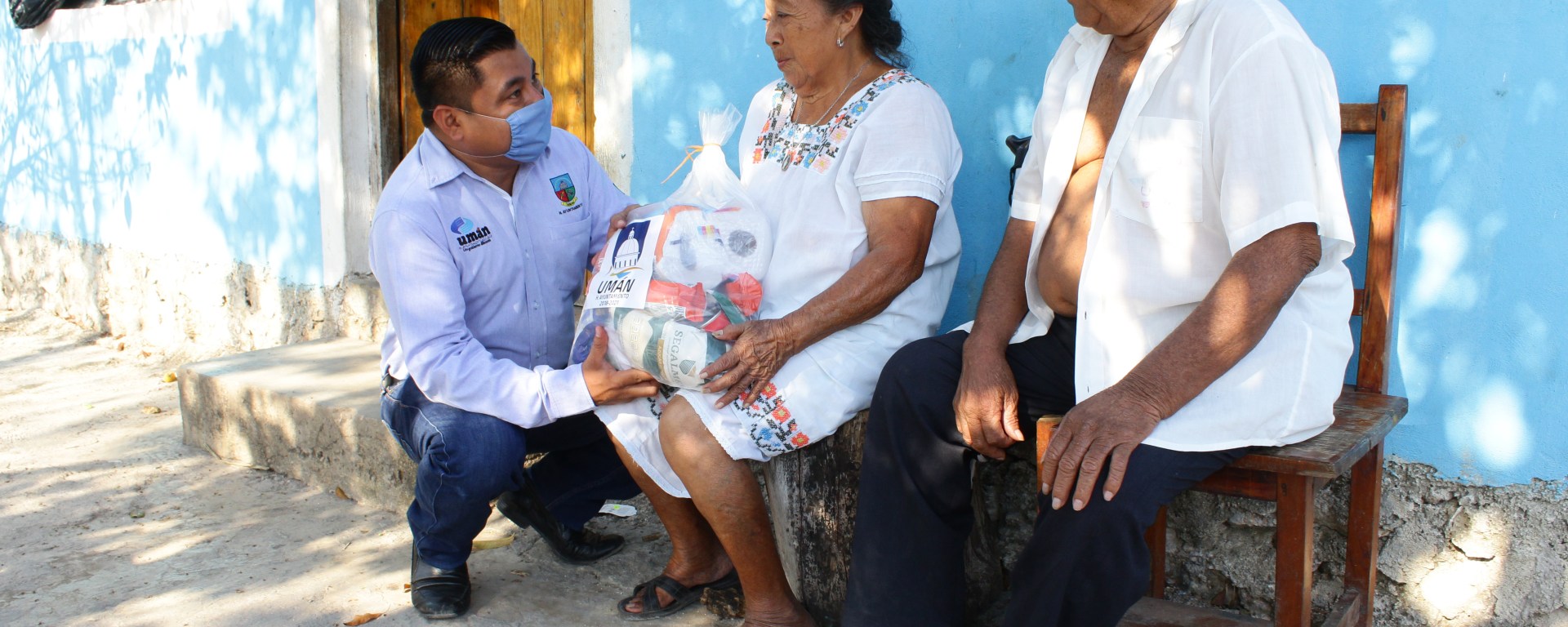 Preocupado por brindar su apoyo a quienes más lo necesitan, el alcalde de Umán, Freddy Ruz Guzmán acudió a las comisarías de Petecbiltún y Tebec para dotar de víveres de primera necesidad a las personas más vulnerables como son los adultos mayores y personas con discapacidad que se ven afectados por el Coronavirus COVID-19 que actualmente enfrentamos a nivel mundial.