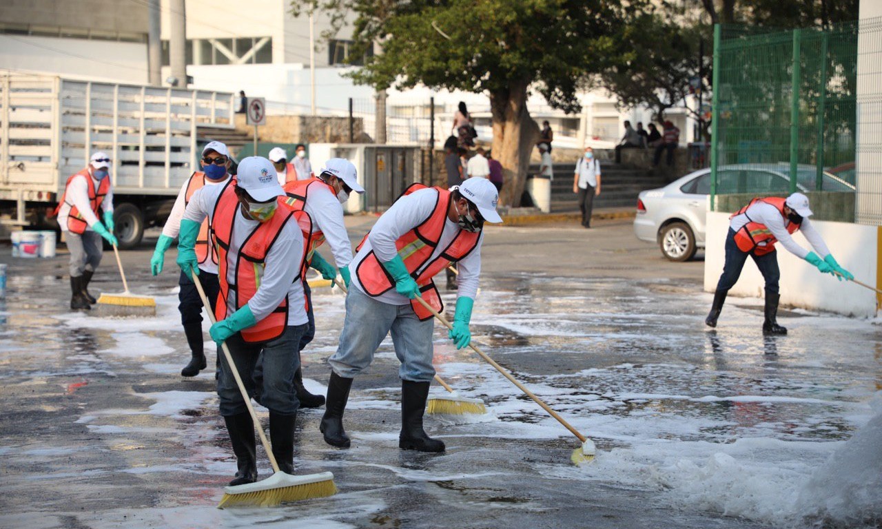 “Se está sanitizando el suelo, las calles y las escarpas para evitar que la infección se propague, ya que sabemos que el virus tiene un tiempo de vida más prolongado en superficies sólidas. Tenemos procesos de limpieza en superficies lisas picaportes, puertas, pisos, mesas fuentes y pasillos. Igualmente, realizamos procesos de sanitización por medio de nebulización en áreas específicas”, puntualizó Marqueda Alcocer.
