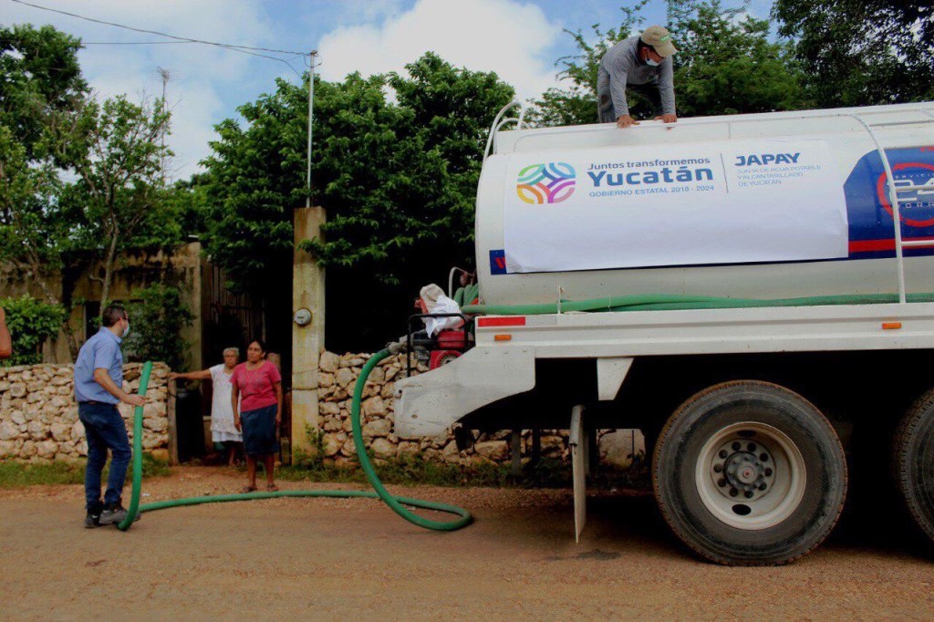 Oxkutzcab, Yucatán, 9 de junio de 2020.- Habitantes de Xul, comisaría de Oxkutzcab, recibieron 20 mil litros de agua, que la Junta de Agua Potable y Alcantarillado de Yucatán (Japay) les envió por instrucción del Gobernador Mauricio Vila Dosal, en respuesta a las afectaciones que dejó la tormenta tropical Cristóbal a su paso.