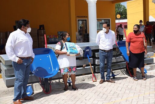 Además, Vila Dosal también siguió con la distribución de 27,000 impermeables, 58,424 costales, 27,000 pares de botas, 1,000 palas, 1,000 picos, 1,000 carretillas y 1,000 machetes para uso en las áreas de Protección Civil en las localidades donde se realizó la Declaratoria de Emergencia como parte de los apoyos gestionados ante el Fonden.