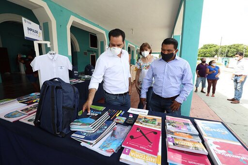 En gira de trabajo por el centro del estado, Vila Dosal visitó los municipios de Suma de Hidalgo y Muxupip, donde además de supervisar la entrega de los Paquetes Escolares, también constató la llegada de los libros de texto gratuito y de los desayunos escolares que se repartirán entre 115,000 estudiantes de preescolar y primero y segundo grado de primaria de todo el estado para que cuenten con esos productos alimenticios, aunque por el momento no haya clases presenciales.