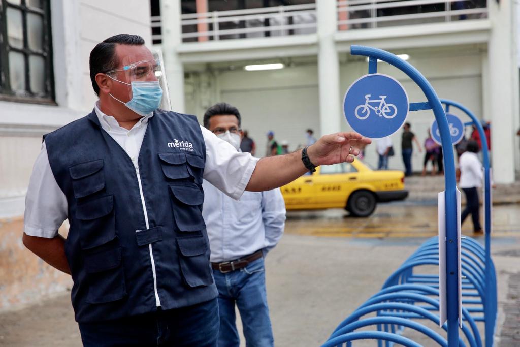Barrera Concha mencionó que los 6 “bici-estacionamientos” colocados en el área de la explanada que une a los mercados Lucas de Gálvez y San Benito y en el pasaje peatonal que se ubica entre el Portal de Granos y el Museo de la Ciudad, tendrán capacidad para resguardar a 48 bicicletas en total.