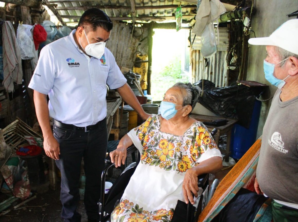 Es por ello, que el alcalde de Umán, Freddy Ruz Guzmán la visitó en su domicilio y le otorgó una silla de ruedas para que con el apoyo de su esposo la pueda trasladar con mayor facilidad.