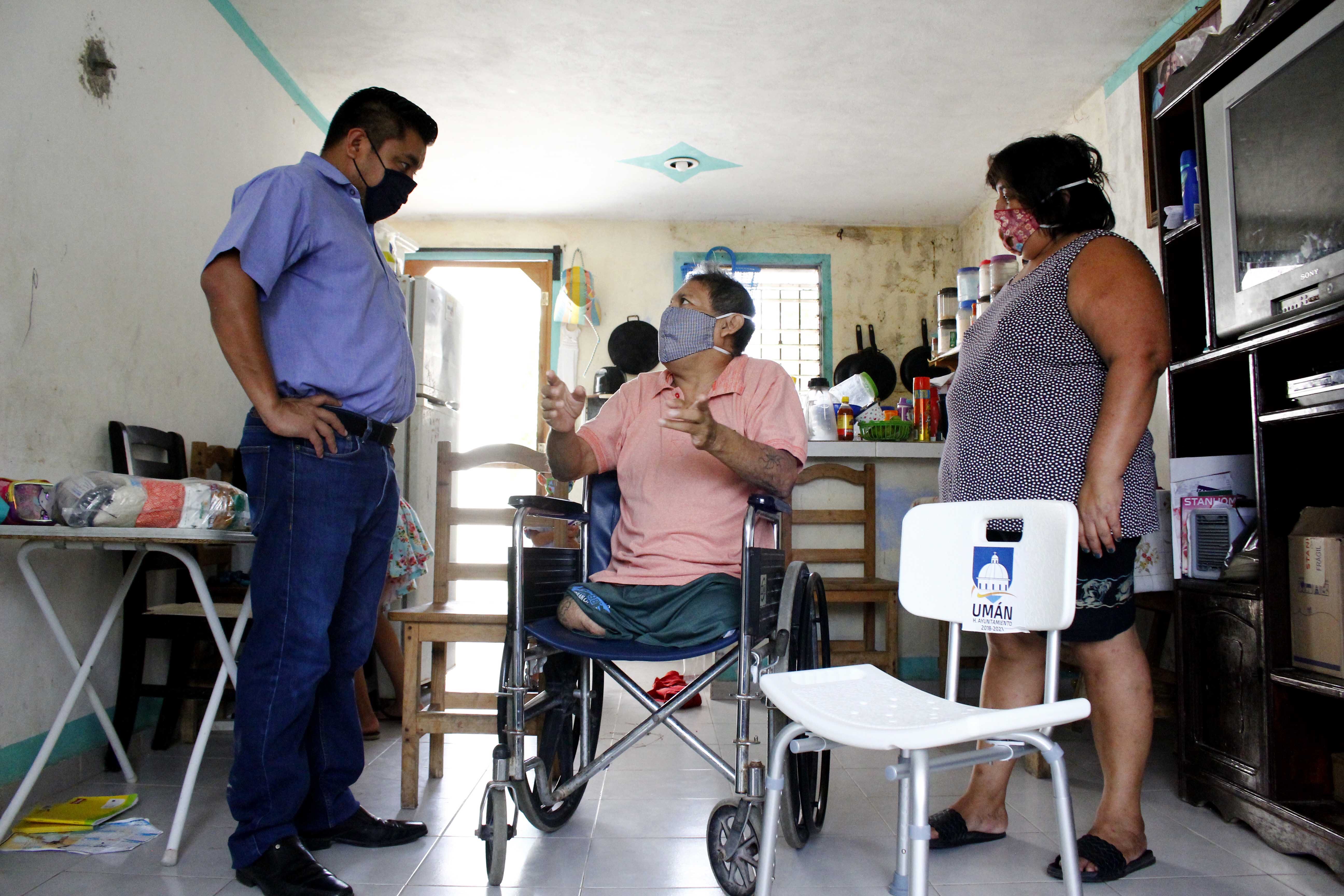Como todos los días, el alcalde Freddy Ruz Guzmán continúa apoyando a las personas más vulnerables ante esta contingencia, por ello, en esta ocasión acudió al fraccionamiento Bosques de Umán para entregarle en su hogar a don José May Cab una silla para baño antiderrapante ortopédica.