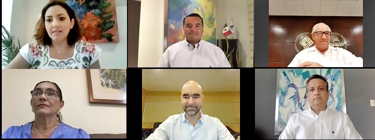 Durante la sesión virtual, el rector de la Universidad Anáhuac Mayab, Miguel Pérez Gómez y el director de Laboratorio de Innovación Colaborativa (LINNCO) Doctor Emilio Martinez de Velasco de esa casa de estudios, expresaron su satisfacción por el acuerdo que les permite sumarse y reforzar el trabajo que ha venido realizando el Ayuntamiento en el impulso a la política alimentaria, que será definitiva para superar la actual crisis por la pandemia.