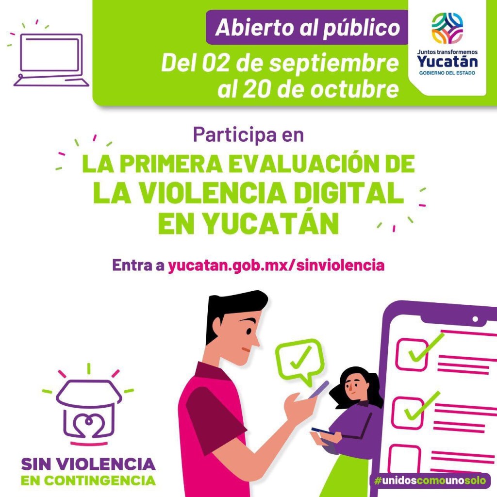 En el marco de la campaña “Sin violencia en contingencia”, Cepredey invita a las y los yucatecos mayores de edad a participar en esta evaluación, sobre todo si han vivido burlas, robo de identidad, extorsión o acoso en línea. La violencia digital puede afectar a cualquier persona; genera consecuencias psicológicas, emocionales y sociales, y limita el pleno ejercicio y disfrute de los derechos humanos.