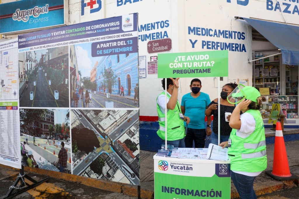 Mérida, Yucatán, 15 de septiembre de 2020.- La tercera jornada de la puesta en marcha de las nuevas zonas de ascenso y descenso en el Centro Histórico de Mérida, así como otras modificaciones incluidas en el Plan de Mejora a la Movilidad Urbana para esta zona de la capital yucateca, se desarrolló con regularidad y solamente se presentaron incidencias menores, informó el Instituto de Movilidad y Desarrollo Urbano Territorial (IMDUT).