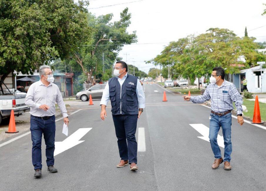 Acompañado de los directores de Obras Públicas y Servicios Públicos, David Loría Magdub y José Collado Soberanis, respectivamente, Barrera Concha recordó que esta obra iniciada en el mes de julio, además de ser de beneficio común contribuye a mejorar la movilidad y, en consecuencia, abona a la reactivación de la ciudad.