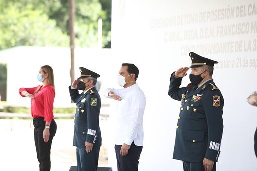 Valladolid, Yucatán, 21 de septiembre de 2020.- El Gobernador Mauricio Vila Dosal asistió a la ceremonia de cambio de mando de la Comandancia de la 32 Zona Militar, que desde este día asumió el General de Brigada Diplomado de Estado Mayor, Francisco Miguel Aranda Gutiérrez, quien sustituye al General de Brigada Fernando Aguirre O. Sunza.