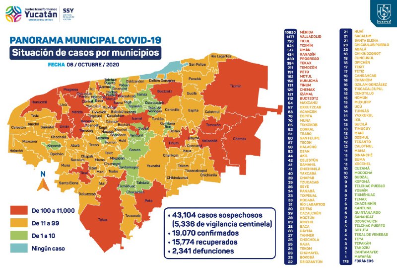Específicamente, en Mérida se han diagnosticado 10,781 personas contagiadas de Coronavirus (casos acumulados al 5 de octubre), que viven en: