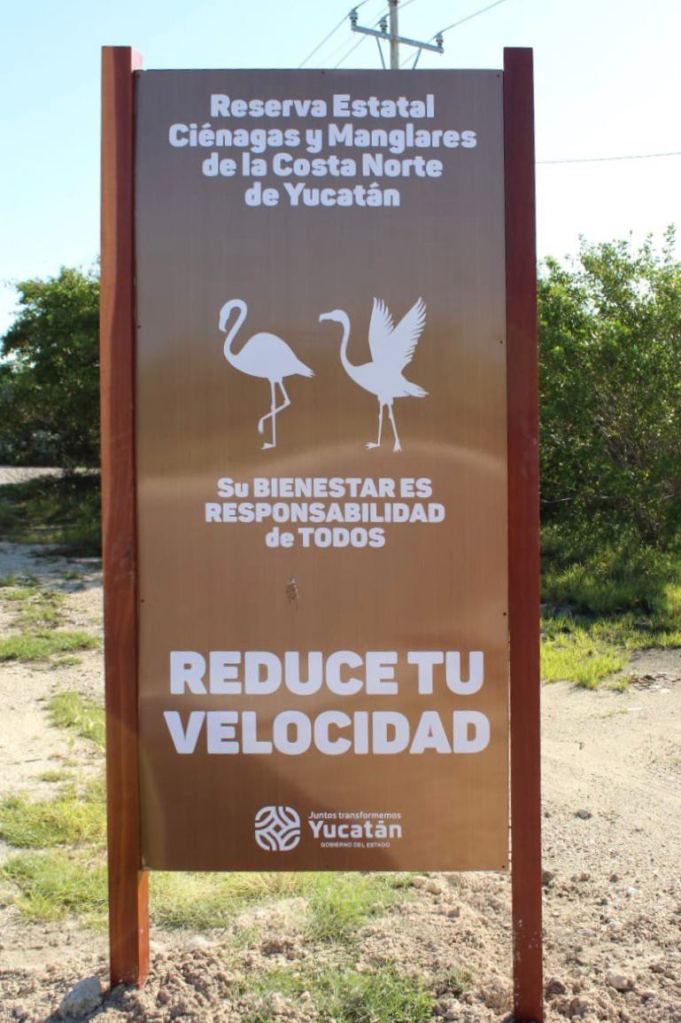 Personal de la Secretaría de Desarrollo Sustentable (SDS) realizó los trabajos de señalética en el Área Natural Protegida Estatal “Ciénagas y Manglares de la costa norte de Yucatán”, con el fin de prevenir posibles daños físicos, así como perturbaciones ante el avistamiento de colonias de flamencos en la zona de la entrada al puerto de Progreso.