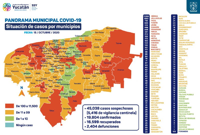 Específicamente, en Mérida se han diagnosticado 11,206 personas contagiadas de Coronavirus (casos acumulados al 14 de octubre), que viven en: