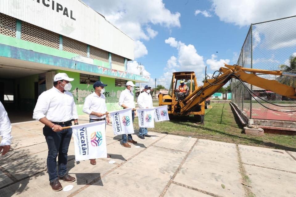 El Gobernador Mauricio Vila Dosal junto con el alcalde de Ticul, Rafael Montalvo Mata, dio el banderazo de inicio de obras de la rehabilitación del Auditorio Municipal, en el que el Ayuntamiento invertirá 4.5 millones de pesos y el Gobierno del Estado apoyará con la instalación de alambrado de la cancha, trabajos que desde hace 15 años no recibe este centro de recreación y que con el inicio de obras generará una considerable fuente de empleos.