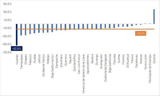 Los datos correspondientes al mes de septiembre permiten observar que el estado ha acumulado once meses consecutivos con tendencia a la baja, de los cuales, siete meses han sido reducciones anuales por encima del 30%.