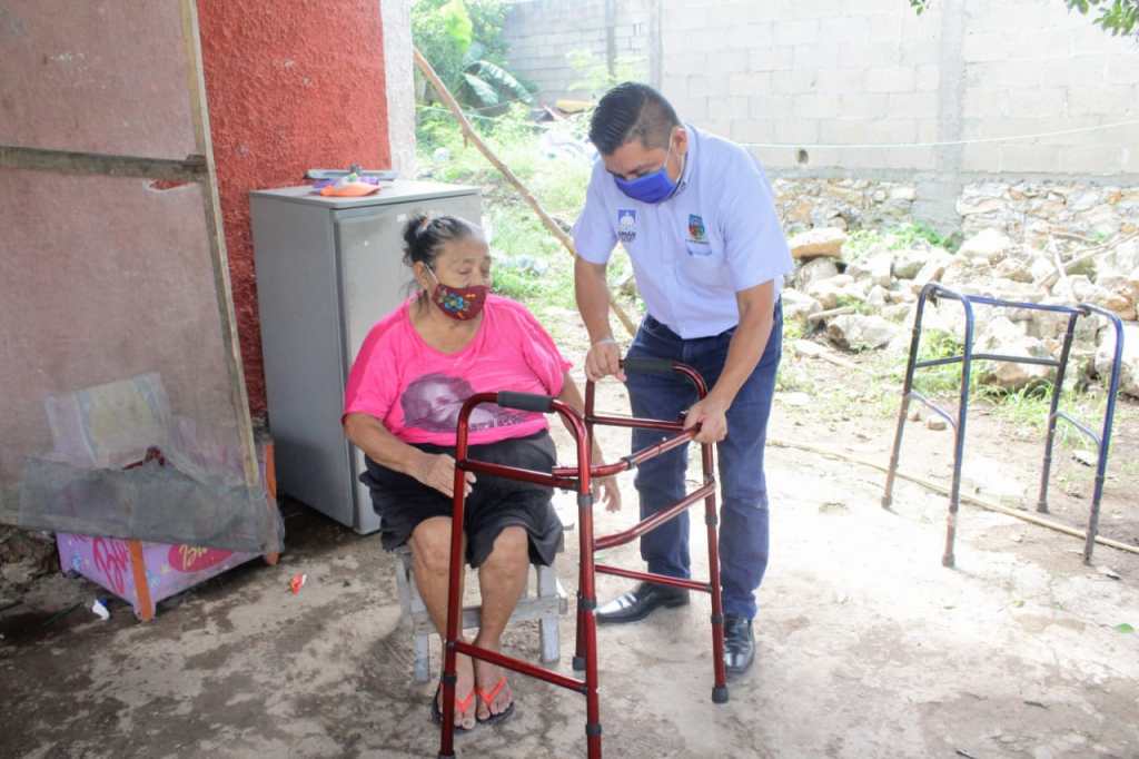 El alcalde Freddy Ruz Guzmán visitó a la señora Apolonia Cutz Pech, vecina de la colonia Granjas Futura a quien le hizo entrega de un burrito andador ya que desafortunadamente hace algunos años sufrió de una embolia que le dejó secuelas en sus rodillas y le es complicado caminar por sí sola.