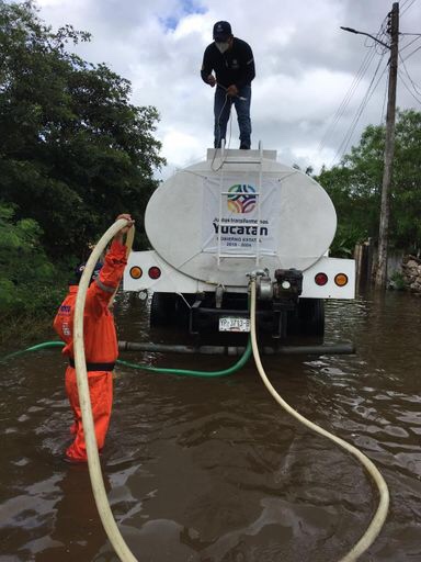 El titular de Procivy, Enrique Alcocer Basto, indicó que este apoyo inmediato a las autoridades y al personal del rubro en el municipio de Motul, además de los pozos pluviales, permitió reducir los niveles de estancamiento y, lo más importante, despejar de agua el interior de viviendas afectadas.