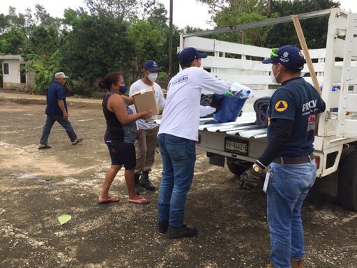 Solo el día de ayer se continuó con la repartición de despensas, agua embotellada, láminas, cobertores, kits de limpieza y de higiene personal, entre otros artículos, a 103 familias de Chablekal, comisaría de Mérida; así como a 128 familias de Dzonot Aké, comisaría de Tizimín.