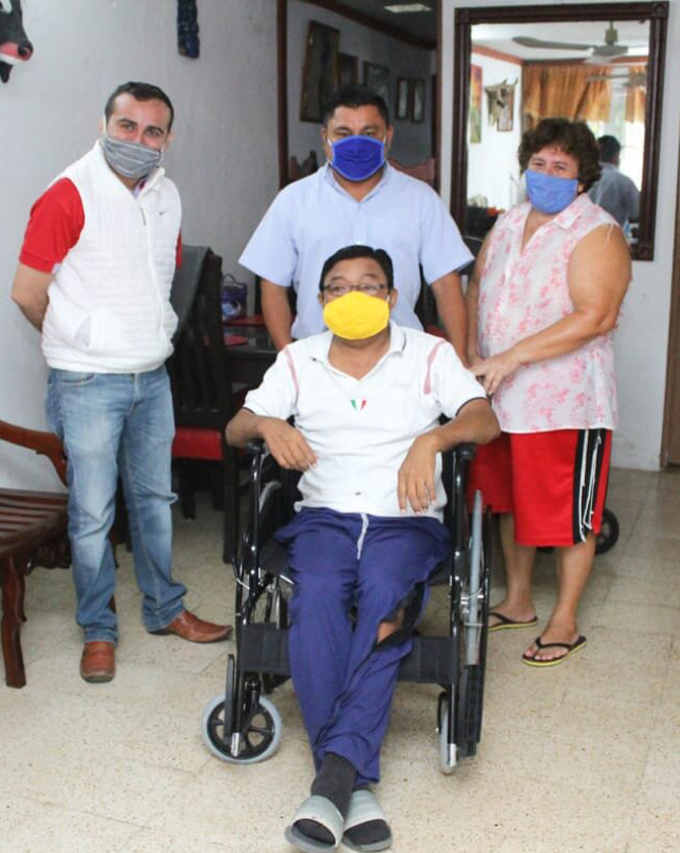 Todos los días el alcalde Freddy Ruz Guzmán trabaja para apoyar a las personas más vulnerables del municipio, por ello, en esta ocasión, acompañado por el director del DIF Municipal, Gaspar Ventura Cisneros Polanco, hizo la entrega de una silla de ruedas a don Juan Manuel Argaez Chi, vecino del fraccionamiento San Lorenzo para que pueda desplazarse con mayor facilidad y continuar con su tratamiento de hemodiálisis.