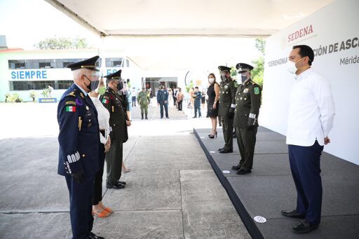 -También, Vila Dosal presenció el ascenso de grado inmediato a 16 elementos de las Fuerzas Armadas de México.