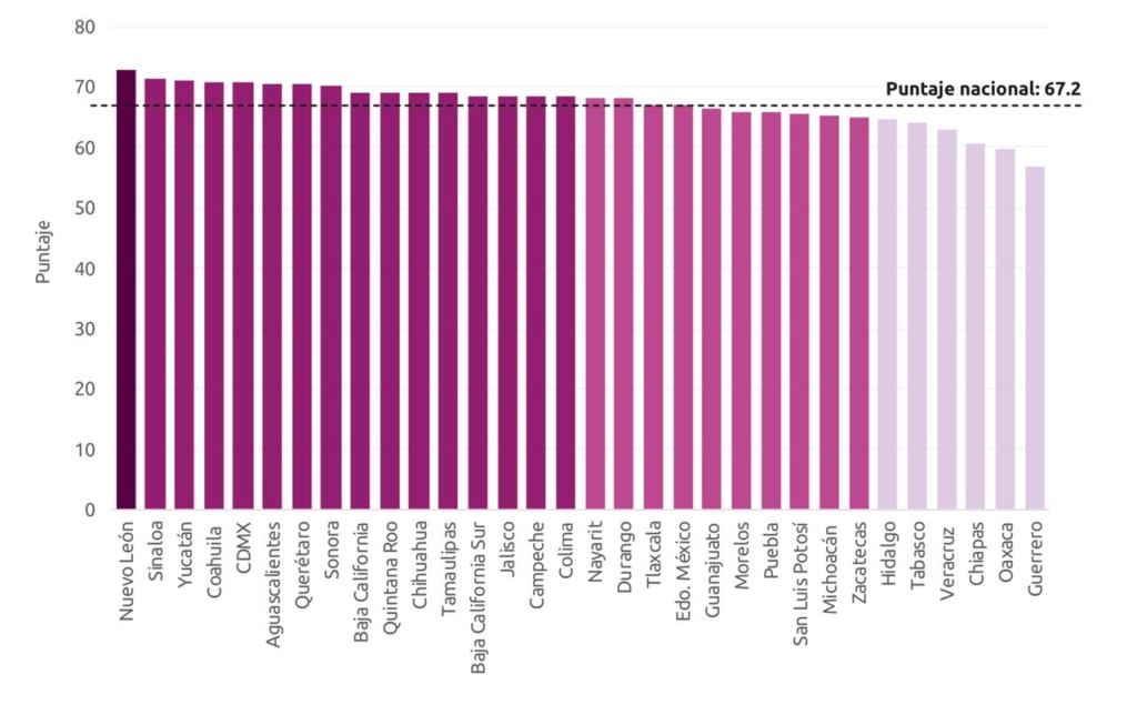 Es importante señalar que, en esta misma dimensión, la entidad se ubicó en el octavo lugar nacional al obtener una calificación de 69.72, por encima del promedio nacional de 68.05 puntos.