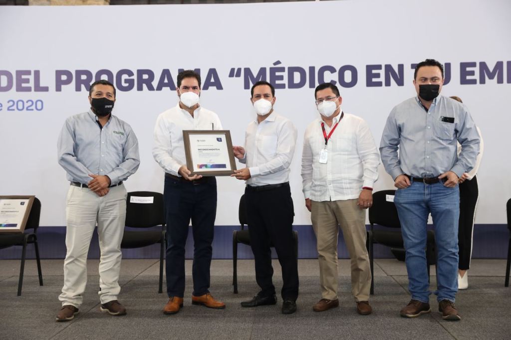 En ese marco, Vila Dosal realizó la entrega de reconocimientos a las empresas comprometidas a participar en el programa “Medico en tu Empresa” instalando un Comité Covid para proteger la salud de su personal de trabajo. Recibieron las firmas Polietileno Publicitario, Canteras peninsulares, Vertical Knits y la Compañía Mayorista de Abarrotes (Coma) de Grupo San Francisco de Asís.