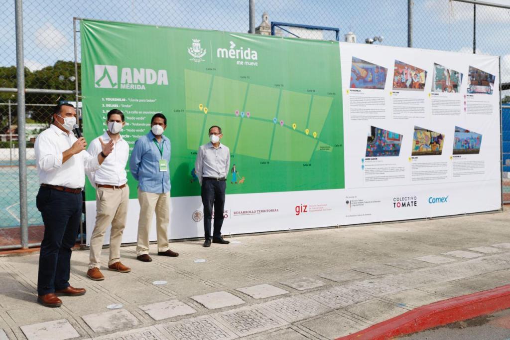 El Concejal presidió esta mañana la entrega de los trabajos del proyecto urbanístico táctico “Anda Mérida”, que realizaron en conjunto el Ayuntamiento, a través del Instituto Municipal de Planeación (IMPLAN), la Cooperación Alemana para el Desarrollo Sustentable (GIZ por sus siglas en alemán), la Secretaría de Desarrollo Agrario, Territorial y Urbano (SEDATU), el Colectivo Tomate y la iniciativa Comex por un México Bien Hecho.