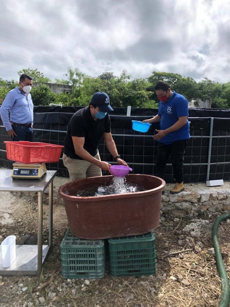 En ese sentido, en representación del Secretario de Pesca y Acuacultura Sustentable de Yucatán (SEPASY), Rafael Combaluzier Medina, el director de Ordenamiento Pesquero Erik Rihani González acudió ayer al Centro Acuícola «El Gran Azul», ubicado en la comisaría de Paraíso, para hacer entrega de 1,000 crías de tilapia de 5 gr y dos bultos de alimento inicial al señor César Fernando Fuentes Alvarado.