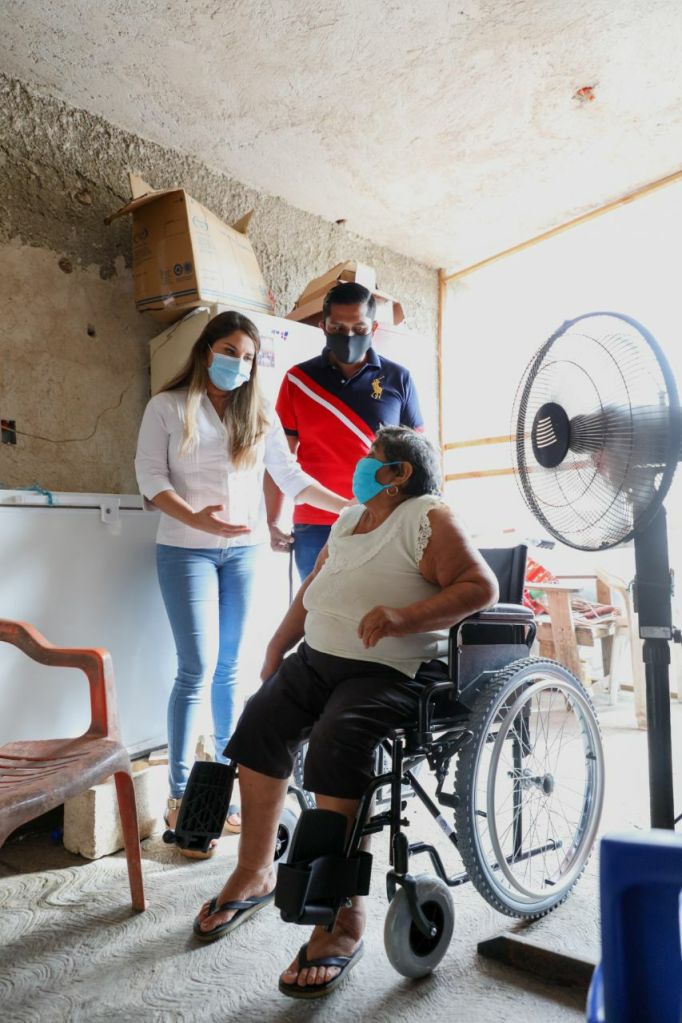 Este apoyo también llegó al municipio costero de Dzilam de Bravo, donde vive Maribel Sánchez Betancourt, una madre soltera de 2 hijas que, pese a su discapacidad, es el sustento de su hogar por lo que pidió apoyo del Gobierno del Estado para poder tener una silla de ruedas que le permitiera salir a trabajar.