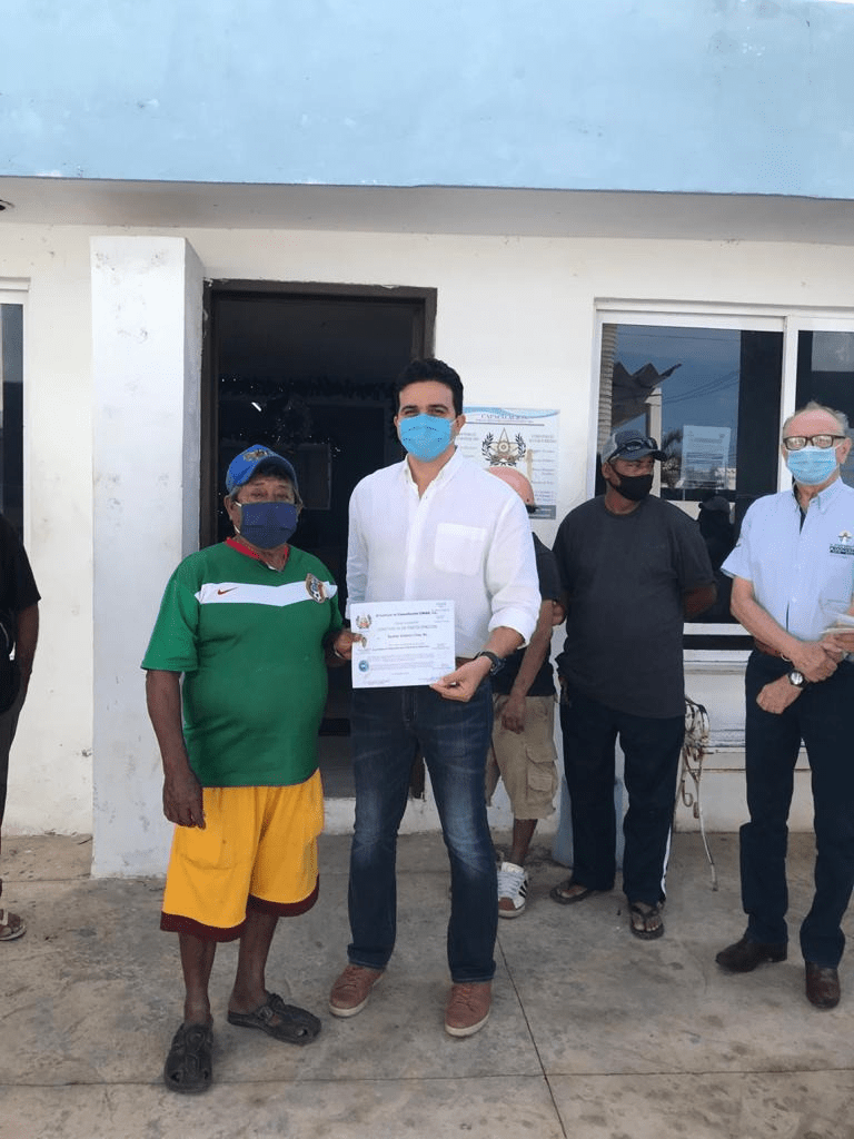 Progreso, Yucatán a 24 de diciembre de 2020.- Más de 335 pescadores ribereños del municipio de Progreso y Telchac recibieron a lo largo de esta semana una constancia de manos del titular de la Dirección de Ordenamiento Pesquero de la Secretaría de Pesca y Acuacultura Sustentable (SEPASY), Erik Rihani González, por participar en el curso de supervivencia para pescadores Ribereños que desde el pasado mes de noviembre impartió dicha dependencia a través del programa “Seguros en el mar”.