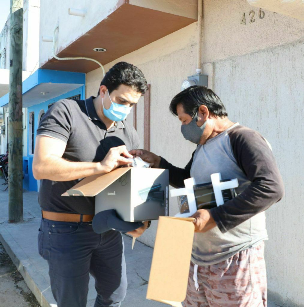 Entre los beneficiarios del municipio de Progreso, se encontraba José Alfredo Vera Lizama quien a las puertas de su hogar le llegó un ecosonda, aparato electrónico que es indispensable para la actividad pesquera e incluso la seguridad de los trabajadores.