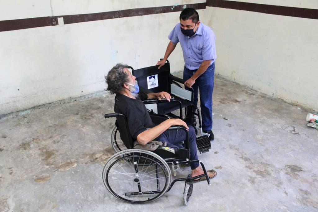 De nueva cuenta, el alcalde de Umán, Freddy Ruz Guzmán visitó a José Florencio Rosado, mejor conocido como “don Flori”, vecino del fraccionamiento San Lorenzo, a quien le hizo la entrega de una silla de ruedas, misma que le ayudará a tener una mejor movilidad ya que ejerce el oficio de voceador con el que se gana el pan de cada día.