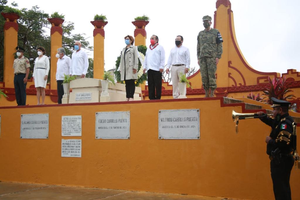 Mérida, Yucatán, 3 de enero de 2021.- La titular de la Secretaría General de Gobierno (SGG), María Fritz Sierra, en representación del Gobernador Mauricio Vila Dosal, se sumó al homenaje a Felipe Carrillo Puerto, en ocasión del 97 aniversario de su fallecimiento.