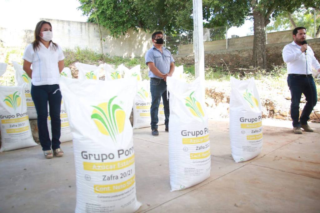 Tekit, Yucatán, 4 de enero de 2021.- Por instrucciones del Gobernador Mauricio Vila Dosal el titular de la Secretaría de Desarrollo Rural (Seder), Jorge Díaz Loeza y la subsecretaria de Gobierno y Desarrollo Político, Carmen González Martín, realizaron una gira de trabajo por los municipios de Mayapán, Teabo, Chumayel, Mama y Tekit para continuar con la entrega de azúcar para que los productores apícolas puedan reactivar sus colmenas.