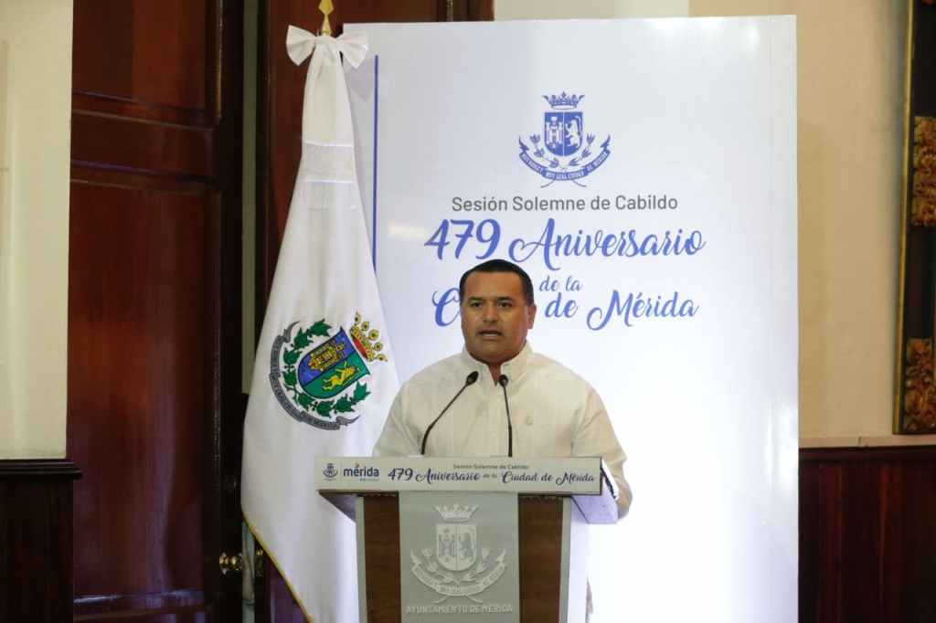 Mérida, 6 de enero de 2021. Mérida celebra hoy 479 años de su fundación en medio de una pandemia que ha sacado a relucir el compromiso y la solidaridad ciudadana, la unión en tiempos adversos, así como el coraje y la determinación para salir adelante de cualquier situación que afecte a las y los meridanos, afirmó el alcalde Renán Barrera Concha en su intervención en la Sesión Solemne de Cabildo con motivo del aniversario de la ciudad.