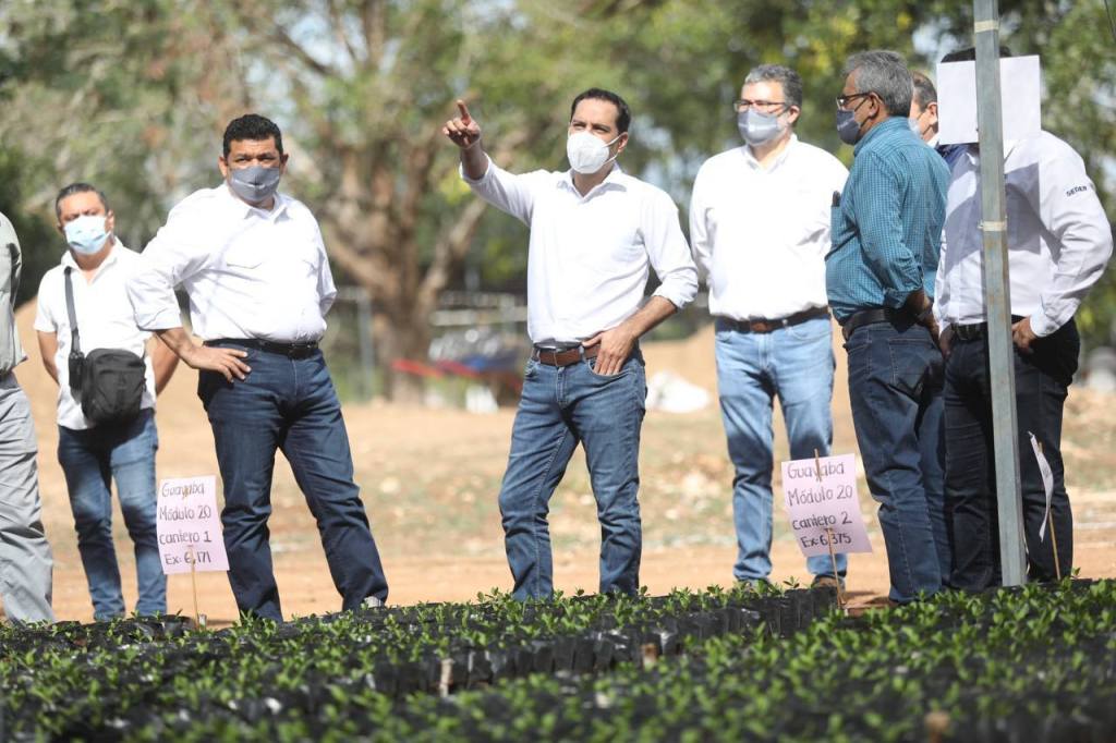 Mérida, Yucatán, 8 de enero de 2021.- El Gobernador Mauricio Vila Dosal realizó una visita para constatar los avances en la producción de plantas frutales del programa federal Sembrando Vida en el vivero que, de manera conjunta, los Gobiernos estatal y federal habilitaron en el recinto ferial de X’matkuil, en cuya operación se están generando 350 fuentes nuevas de empleos para habitantes de colonias y comisarías cercanas a Mérida, así como de otros municipios.
