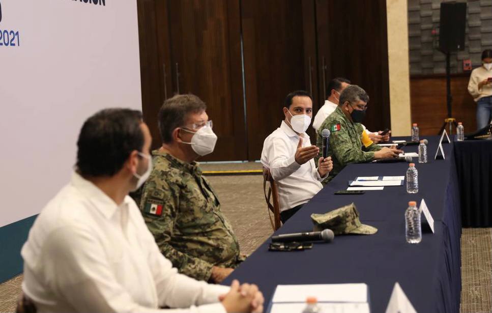 Acompañado de autoridades militares, así como de representantes de instituciones de salud y centros de investigación del estado, Vila Dosal presidió esta reunión que tuvo como objetivo fortalecer lazos de coordinación entre las instituciones de salud del estado, estandarizar criterios y bases para la vacunación, a fin de que el proceso se desarrolle lo más ordenado y eficiente posible.