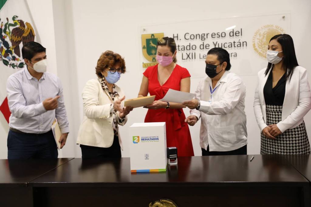 En la entrega del Informe, estuvieron presentes los diputados Paulina Viana Gómez, Luis María Aguilar Castillo y Fátima Perera Salazar y el Secretario General de Congreso, Martín Chuc Pereira.
