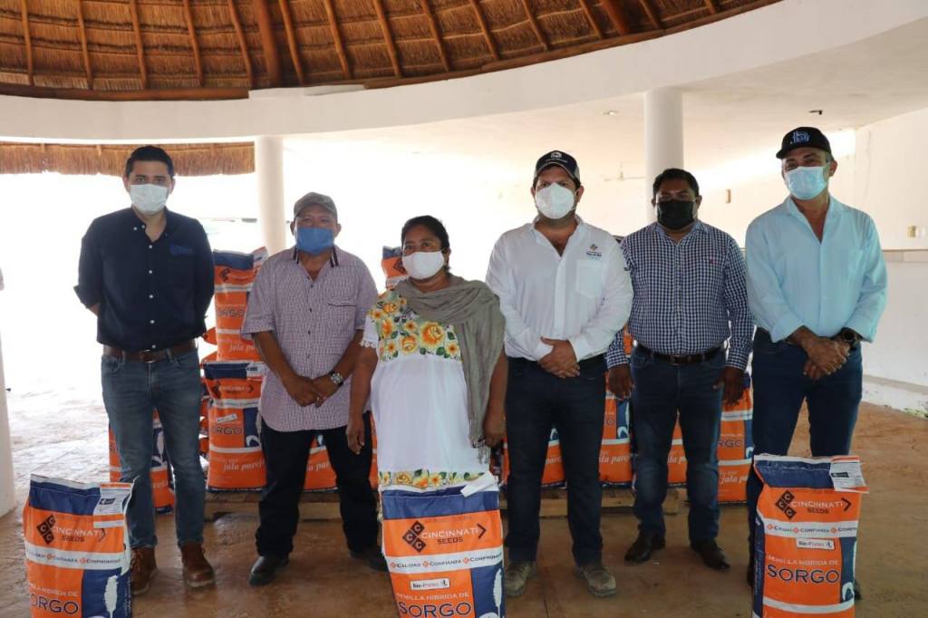 Por instrucciones de Vila Dosal, el titular de la Secretaría de Desarrollo Rural (Seder), Jorge Díaz Loeza, acudió al local de la Unión de Ejidos Agropecuarios del Cono Sur, en donde entregó 150 sacos de semillas de sorgo y 100 sacos de azúcar en beneficio de hombres y mujeres que se dedican a la actividad agrícola.