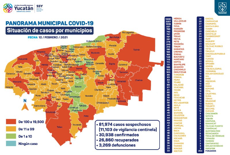 Específicamente, en Mérida se han diagnosticado 19,019 personas contagiadas de Coronavirus (casos acumulados al 9 de febrero), que viven en: