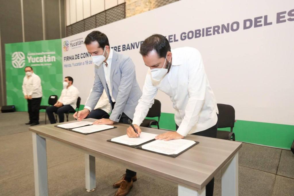 En el Centro Internacional de Congresos (CIC), el Gobernador y el director de Asuntos Corporativos y socio fundador de Banverde, Alberto Fabio González Ramírez, firmaron dicho convenio, con el cual Yucatán reafirma el importante papel que tienen las energías limpias en la reactivación de su economía y su interés de cuidar las fuentes de empleo, mediante la oportunidad de que grandes y medianas empresas se sumen a este esquema y ahorren gastos en energía eléctrica ante la complicada situación actual.
