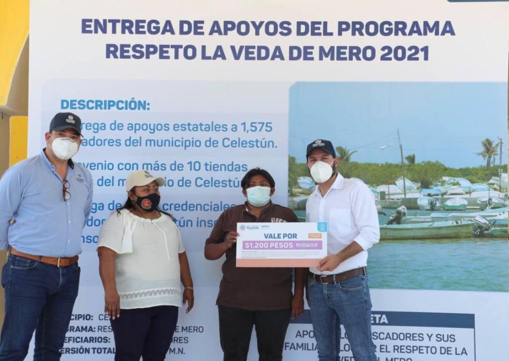 En gira de trabajo por ese punto de la costa yucateca, Vila Dosal realizó, junto al titular de la Secretaría de Pesca y Acuacultura Sustentables (Sepasy), Rafael Combaluzier Medina, la distribución de esta ayuda por 1,200 pesos en vales, correspondiente a la segunda de un total de 4 entregas que recibirán los beneficiarios entre el 1 febrero y el 31 de marzo, en beneficio de Mariana y otros más de 1,500 pescadores de este puerto. También se entregaron las credenciales de registro del padrón de beneficiarios de este programa.