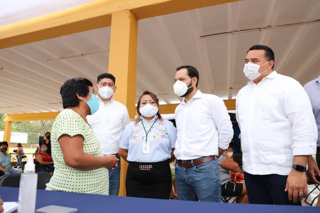 Junto con la comisaria municipal de San José Tzal, María Azucena Chan Narváez, Vila Dosal y Barrera Concha recorrieron las mesas de registro que se instalaron en esta localidad para recibir las solicitudes de la población interesada, labor que está a cargo de personal del Gobierno del Estado. Ahí, se encontraba María Griselda de Jesús Narváez, quien agradeció la implementación de este esquema, ya que ella y su familia siguen sufriendo los efectos económicos que la pandemia trajo consigo, desde su inicio el año pasado.