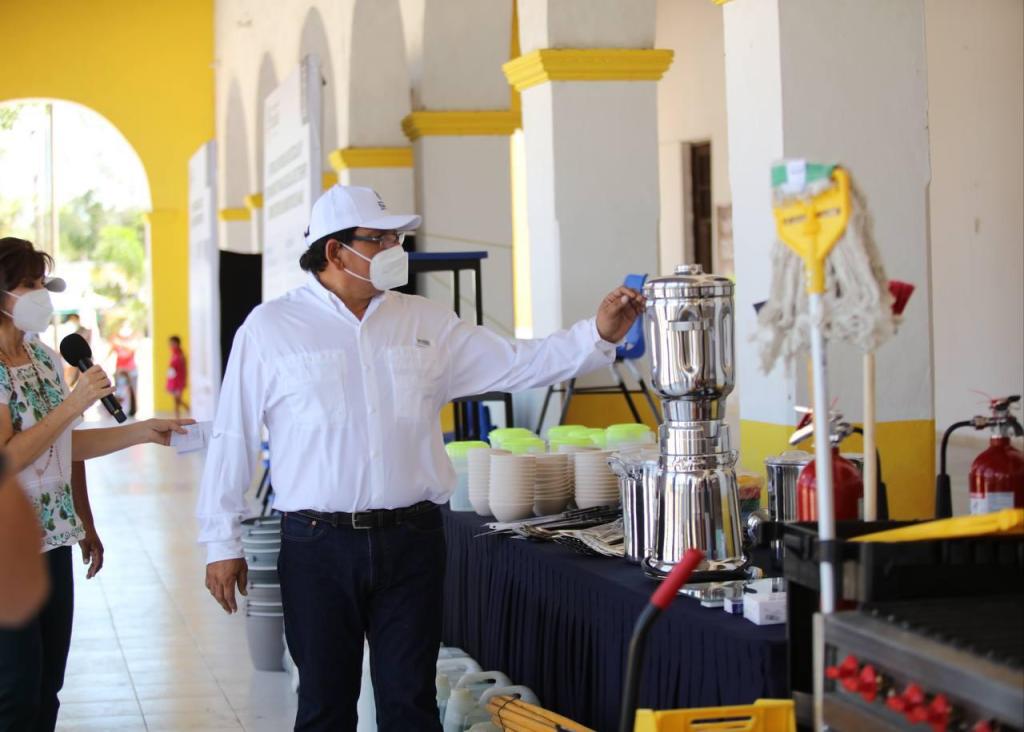 Junto a la secretaria de Educación del estado, Loreto Trujillo Villanueva, supervisó la entrega de mobiliario para escuelas y equipamiento a planteles de Tiempo Completo en esta localidad. Se benefició a 323 alumnos de 3 escuelas con el equipamiento, de las cuales, 2 se encuentran en la cabecera municipal y una más en la comisaría de Tipikal.
