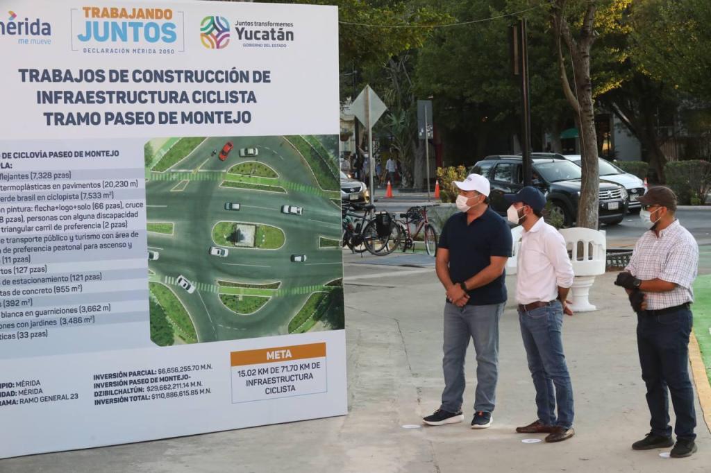 Cabe mencionar que, en total, mediante el Plan de Infraestructura de Ciclovías, se están interviniendo los siguientes tramos: Paseo de Montejo-Entronque Dzibilchaltún, 15 kilómetros; Zona Norponiente, 21.15 kilómetros, Norte de Mérida–Ucú, 15.5 km y Zona Sur, 20 kilómetros.