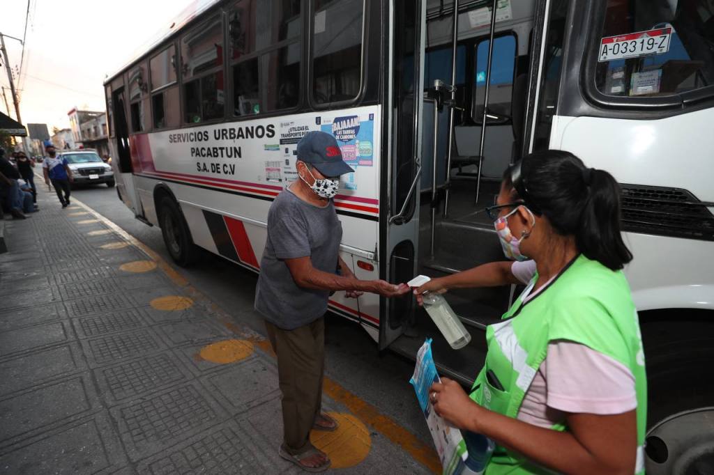 Esta estrategia contempla poner a disposición de los yucatecos a personal del Gobierno Estatal, identificado con chalecos verdes, quienes se encuentran en diversos puntos del centro de la ciudad para proporcionar información a los usuarios y reparten gel antibacterial, tarea que se complementa con el apoyo de choferes de camiones e inspectores del Instituto de Movilidad y Desarrollo Urbano Territorial (Imdut) para agilizar y hacer más eficiente el uso del transporte público.