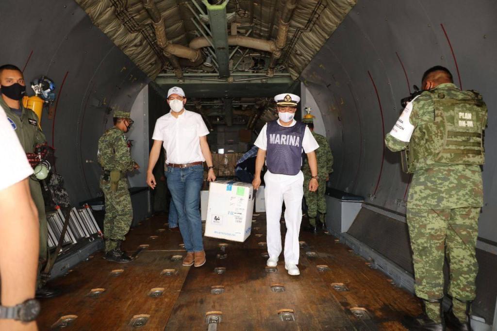 Por instrucciones de Vila Dosal, el titular de la Secretaría de Salud de Yucatán, Mauricio Sauri Vivas, supervisó, en la Base Aérea Militar Número 8, el arribo del nuevo cargamento de vacunas de la farmacéutica Pfizer, el cual llegó a las 11:55 de este día a bordo de una aeronave Hércules matrícula 3611 de las Fuerzas Armadas, proveniente de la Ciudad de México.