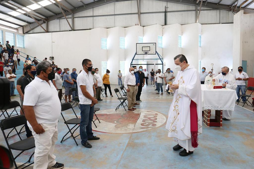 Mérida, Yucatán 1 de abril de 2021.- Con la tradicional misa presidida por el Arzobispo de Yucatán, monseñor Gustavo Rodríguez Vega al interior del Centro de Reinserción Social (Cereso) de Mérida las personas privadas de su libertad celebraron este día la institución de la Eucaristía, en el marco de los oficios de la Semana Santa.