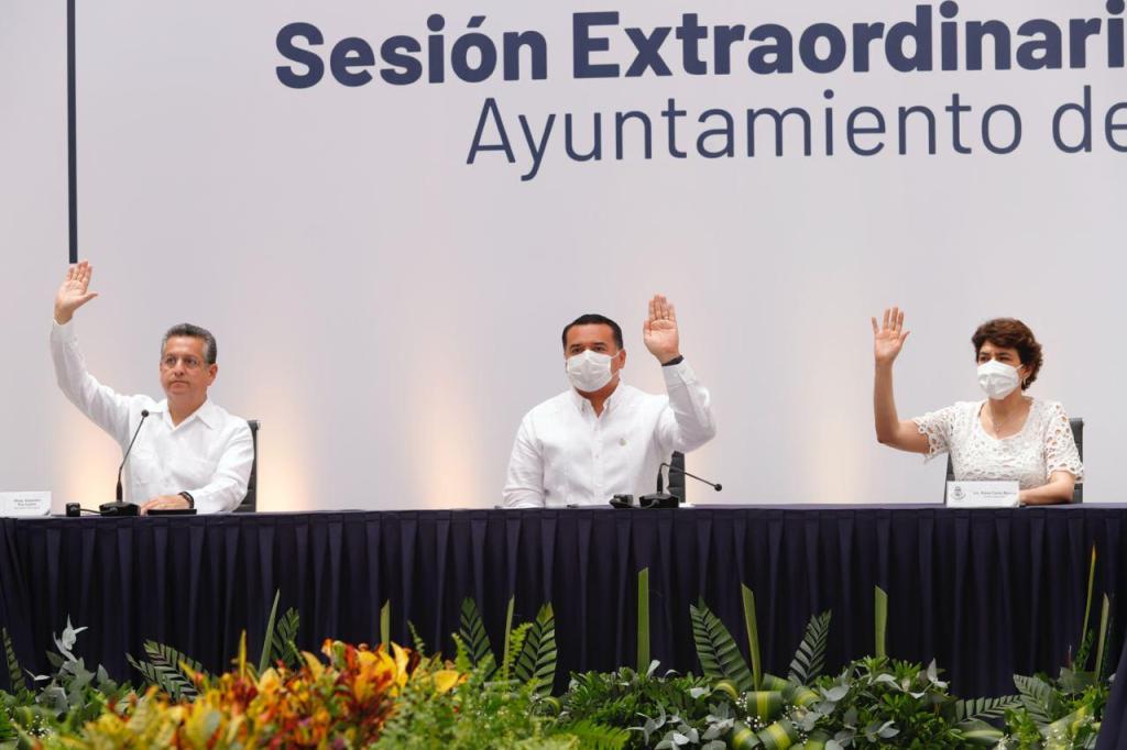 Durante esta sesión extraordinaria también se aprobó por unanimidad la propuesta para nombrar a Alejandro Ruz Castro como Presidente Municipal Interino del Ayuntamiento de Mérida, así como la solicitud de licencia laboral sin goce de sueldo presentada por Mario Martínez Laviada, Oficial Mayor.
