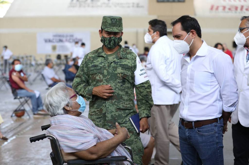 En ese marco, Vila Dosal agradeció al Coordinador Estatal para la Vacunación, así como al Ejército Mexicano, a la Secretaría de Bienestar, al Ayuntamiento de Mérida y a la Secretaría de Salud Estatal, por el trabajo coordinado y eficiente que se realiza para el proceso de vacunación en Yucatán, el cual, resaltó, es diferente a lo que está pasando en otros estados del país.